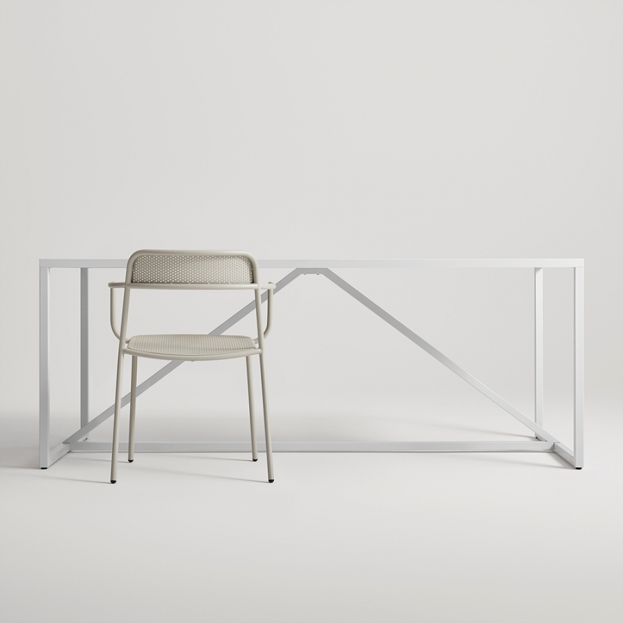 Whatever you do, don¡¯t call it basic. Clean lines and sophisticated geometry form a minimal outdoor chair that¡¯s everything it¡¯s shaped up to be. Perforated seat and back detail apt for wowing guests and weathering the elements. Valid excuse to work, dine and stare off into space alfresco.